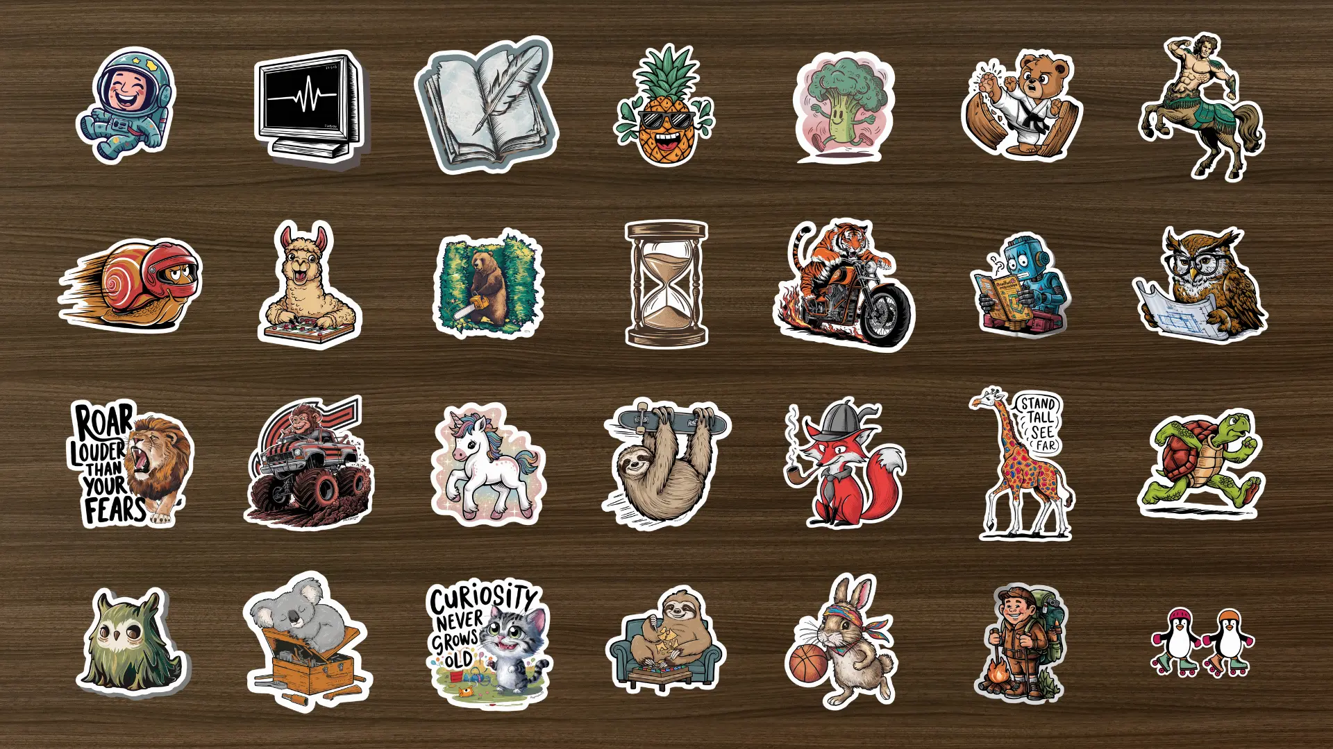 New to the sticker scene or just looking to boost your collection? This package is a sticker wonderland! With 2000+ options, there's something to make everyone's imagination go wild. Plus, everything is already designed and ready to go, so you can skip the drawing board and focus on unleashing these stickers on the world.